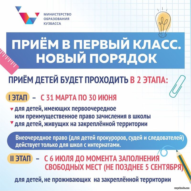 Приемная кампания в первый класс начинается с 1 апреля 2026 года