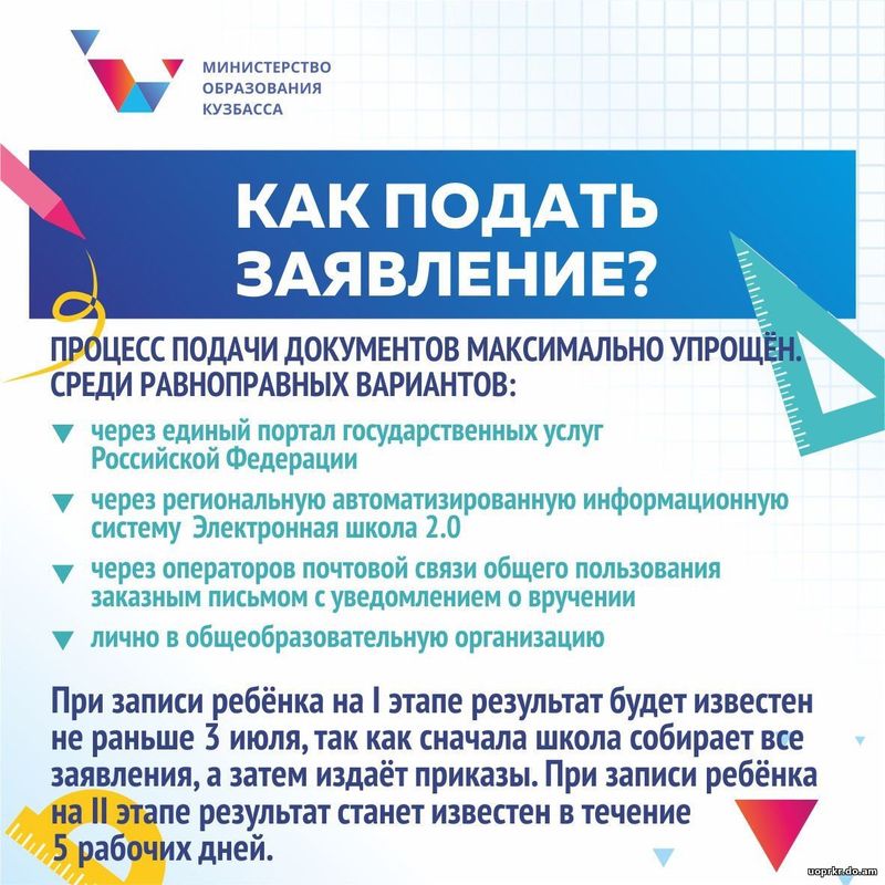 Уважаемые родители (законные представители), заявление в школу для зачисления ребенка в первый класс можно подать через: